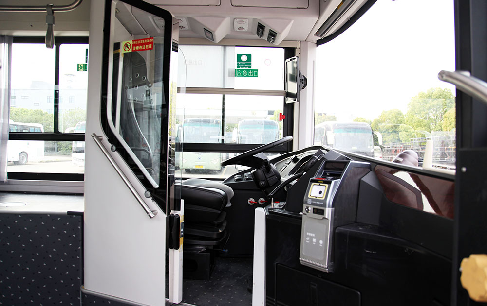 整車低地板設(shè)計,配備ECAS懸架系統(tǒng),駕駛區(qū)安裝氣囊減震座椅、全液晶儀表,小型智能嵌入式投幣機,一體式司機包圍結(jié)構(gòu),提高駕乘舒適性和安全性;
